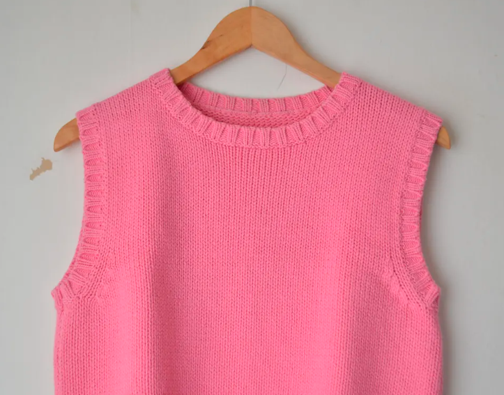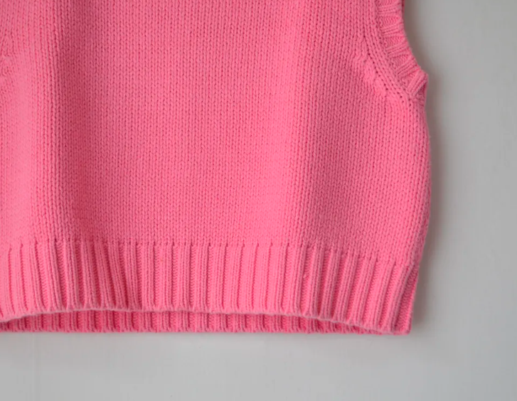 Add a touch of playful femininity to your wardrobe with this handmade cropped vest in a gorgeous bubblegum pink shade.